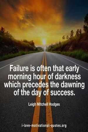 - Failure is often thet early morning hour of darkness which precedes the dawning of the day of success.