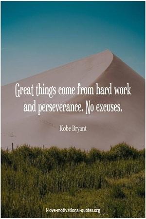 - Great things come from hard work and perseverance. No excuses. - Kobe Bryant