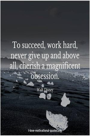 - To succeed, work hard, never give up and above all, cherish a magnificent obsession. - Walt Disney
