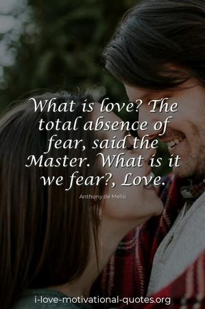 - What is love? The absence of fear, said the master. What is it we fear?, Love. - Anthony de Mello